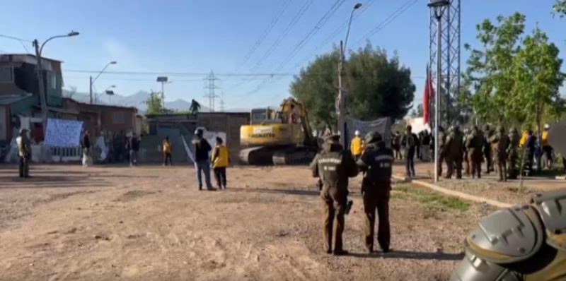Esta mañana comenzó con incidentes menores en el desalojo de la toma Dignidad en la comuna de La Florida, en los límites con Peñalolén. Se trata del operativo más grande en la región Metropolitana en los últimos cuatro años, con un despliegue de alrededor de 800 efectivos entre personal de Carabineros y municipal.